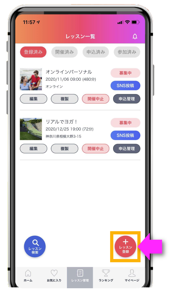 あなたが参加した、または気に入ったレッスンをSNSに投稿して、友達にシェアできる機能です。ぜひたくさんの人にシェアをして盛り上がろう!次は友達と一緒に参加するのもGOOD!